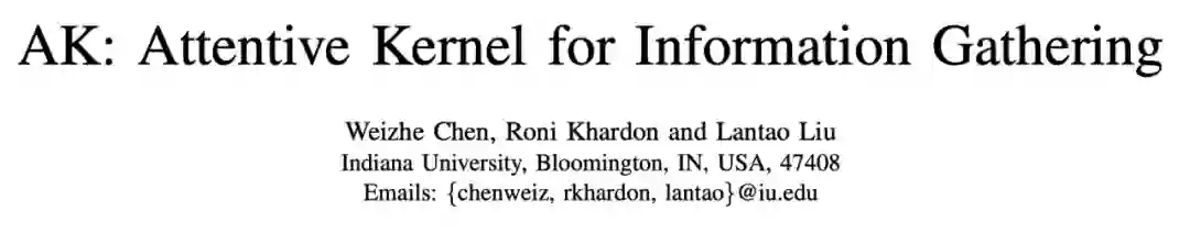获得最佳学生论文奖的是《AK: Attentive Kernel for Information Gathering》。在这篇论文中,作者提出了一种新的非平稳核,称为 Attentive Kernel (AK) ,它简单、鲁棒,可以把任何已有的核扩展成非平稳核。
