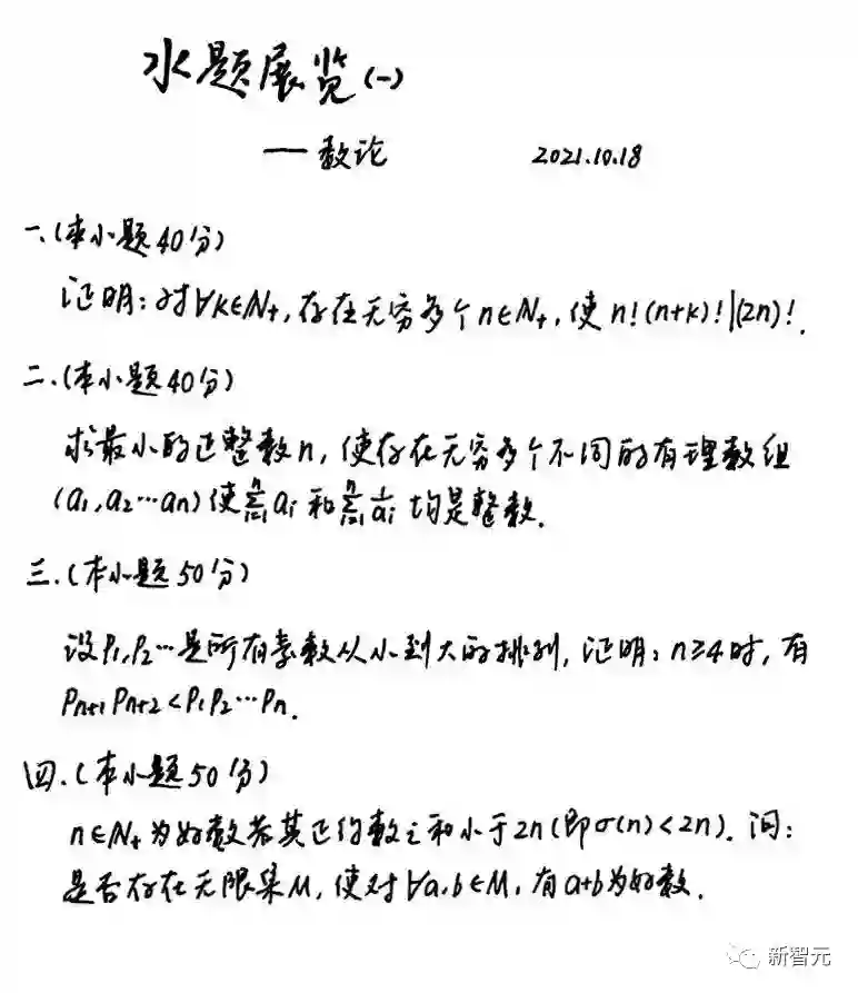 在另一篇公众号文章《水题展览》中,周睿哲还曾发起「水题」征解。