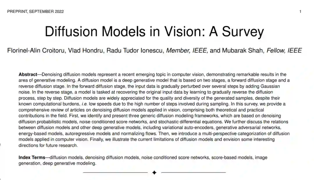 在这篇论文中,来自布加勒斯特大学、中佛罗里达大学的 Mubarak Shah(IEEE Fellow)等几位研究者对计算机视觉中的 100 多篇去噪扩散模型论文进行了全面回顾。