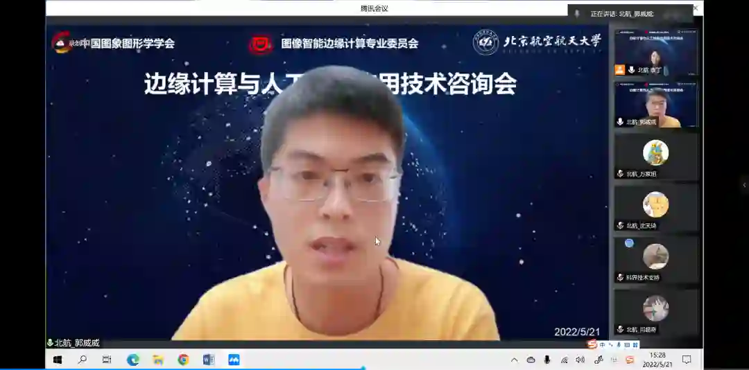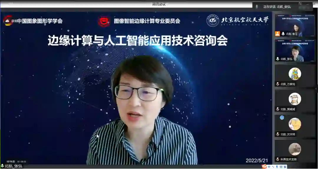 2022年5月21日下午,CSIG图像智能边缘计算专委会在中国图象图形学学会的支持下,举办了一场精彩的边缘计算与人工智能应用技术线上咨询讲座。为了激发研究生、本科生以及中学生探索信息科技前沿的兴趣,树立学生不断探索创新的理想,扩大中国图象图形学学会影响力,专委会邀请了专委会委员主任张弘教授以及袁丁副教授,杨一帆副教授,李旭亮博士后,闫超奇博士,万家旭博士等相关成员作为演讲嘉宾与大家分享边缘计算与人工智能技术发展历程、研究趋势及开展线上答疑。