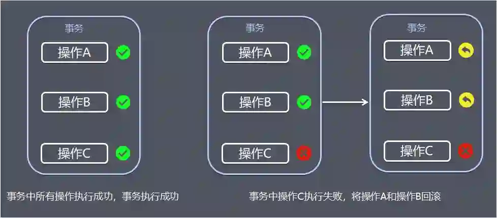 简单而言,就是业务上有一组数据操作,需要如果其中有任何一个操作执行失败,整组操作全部不执行并恢复到未执行状态,要么全部成功,要么全部失败。