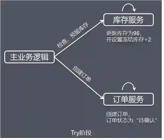 在交易系统的业务逻辑中,一个商品在下单之前需要先调用库存服务,进行扣除库存,再调用订单服务,创建订单记录。
