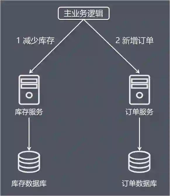 上图中包含了库存和订单两个独立的微服务,每个微服务维护了自己的数据库。