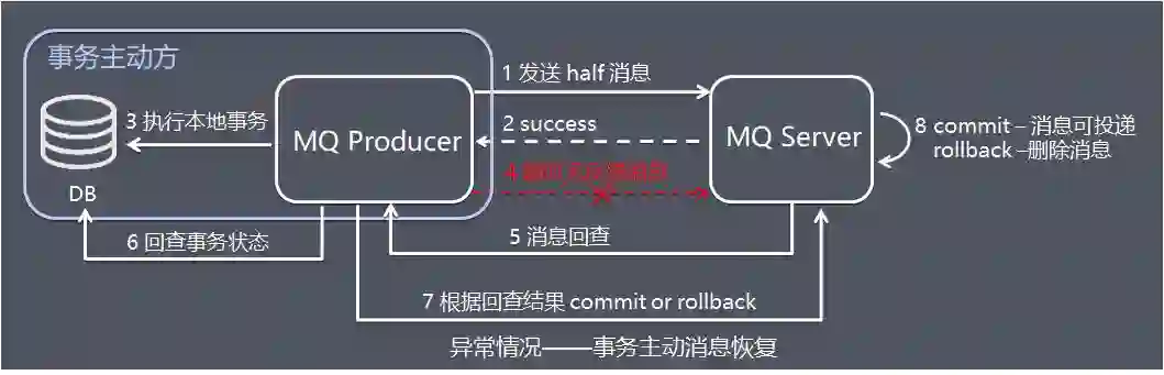 图中 6:发送方收到消息回查后,需要检查对应消息的本地事务执行的最终结果。