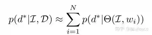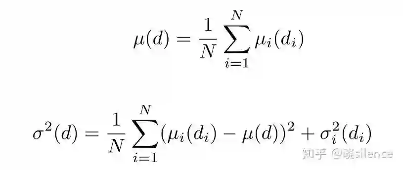 再Bayesian深度学习框架中,模型的不确定性可以解释为边缘化所有可能的 而不是进行单点估计。通过对N个模型的采样,可以将均值方差建模为: