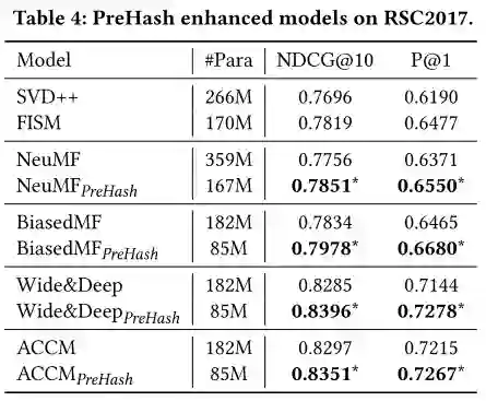 “ 本文介绍了一种新的用户偏好表示方法PreHash ,同时考虑到了大规模数据和冷启动用户。该方法可以在很多推荐算法中替代其用户embedding矩阵。若干SOTA算法上的实验结果显示该算法不仅取得了更好的效果,还减少了模型的参数。”