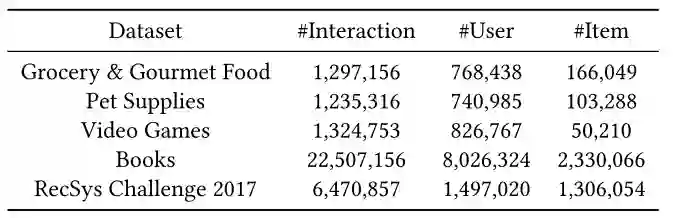 「数据集:」 亚马逊电子商务数据集的四个子集,以及RecSys Challenge 2017数据集。