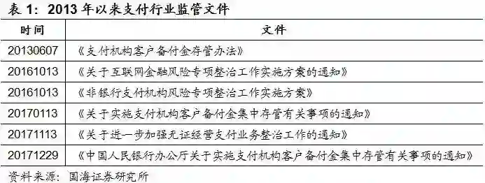 2013年以来支付行业监管文件(来源:国海证券研究所)
