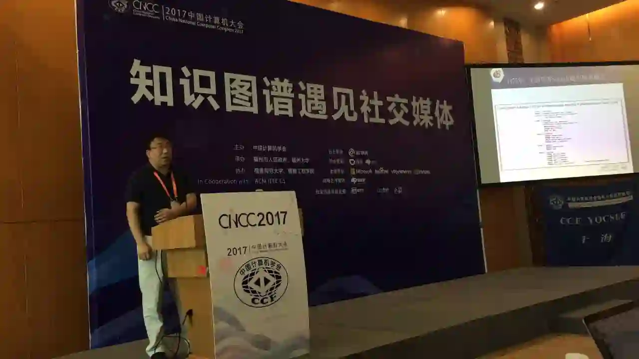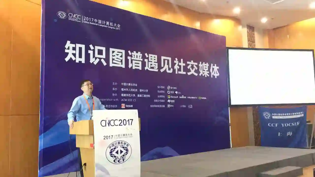 10月26日下午,由CCF YOCSEF上海和CCF中文信息技术专委会联合主办的“知识图谱遇见社交媒体技术”论坛如期举行,论坛执行主席为CCF YOCSEF上海主席、深圳狗尾草智能科技公司CTO王昊奋博士和CCF YOCSEF总部学术秘书、中国科学院信息工程研究所网络空间技术实验室主任助理林俊宇博士共同主持。本次活动邀请到了国内知识工程和社交媒体领域的顶级专家、学者和企业家共六位讲者共聚一堂。本次论坛吸引了超过300名听众,CCF广州分部主席臧根林、CCF YOCSEF总部荣誉委员胡春民、荣誉委员姜波、荣誉委员卢东昕、AC委员董笑菊,上海分论坛学术秘书李超、卢暾,AC委员高博、陈铭松等应邀参加了活动。