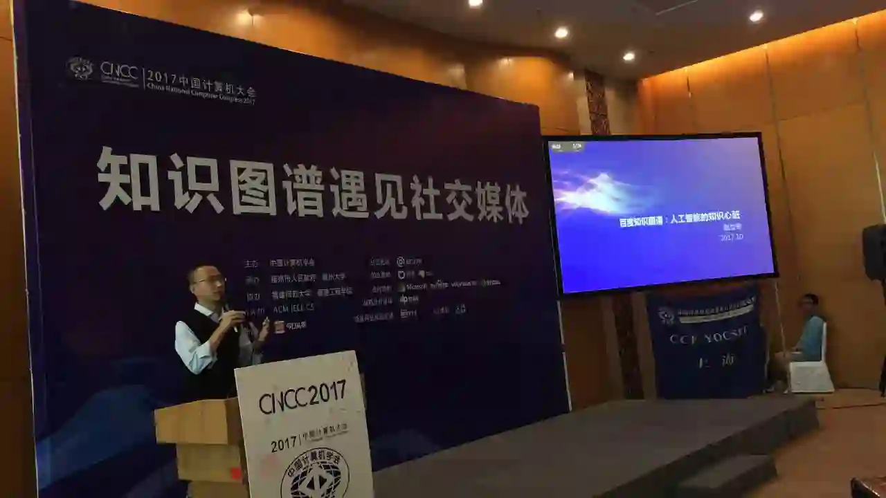 第六位讲者是百度公司自然语言处理部总监赵世奇博士,他的报告题目是《百度知识图谱:人工智能的知识心脏》。赵博士介绍了百度在知识图谱方向上深耕多年,具有深厚的技术和数据积累,所构建的知识图谱在多个实际产品中发挥着重要作用,并介绍了百度在知识图谱建设与应用过程中,特别是在知识抽取、消歧、实体关联、实体归一等方面的解决方案以及在问答、自动文章生成等应用方面的最新进展,最后展望了非简单事实类知识、跨媒体知识、知识自学习、知识化搜索和通用对话等方面的趋势。