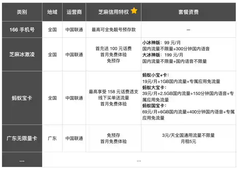 过去一年,互联网通信套餐受到了许多消费者的欢迎,但是部分优惠都需要通过预存金额的方式才能享用。借助芝麻信用分,你除了可以享受到免预存服务外,甚至还能得到其他优惠(参见下列部分手机卡特权👇)。