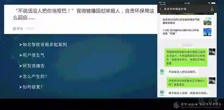 最近某地政府官方微信引用了智能机器人,因为有一些不恰当的回复,把新华社点名了。大家看看这个截图,很明显这个机器人是一个聊天机器人,并不是问答机器人,把用户的输入变成闲聊对话,匹配度又不是很高,导致它产生了这样的回答。发生这样的问题,国内很多公司都在做智能音箱,这个问题和智能音箱背后的问题是一样的,因为智能音箱从原理技术上也是这样实现的。遇到这样的问题,用户是非常生气的,研发却很痛苦。从技术角度来说,现在并没有很好的解决方案来解决这样的问题,比如这个应用直接就下线了,导致比较严重的后果。