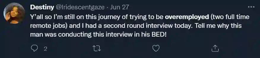 Isaac P. 在接受这些媒体采访时透露说,其实在科技行业,Overemployment 并不是什么新鲜事,而是已经存在了多年的一个「公开的秘密」。而且这些人很少被雇主发现,除非这个人非常马虎,在主要工作电脑上运行不应该运行的脚本,就可能被监控软件发现。