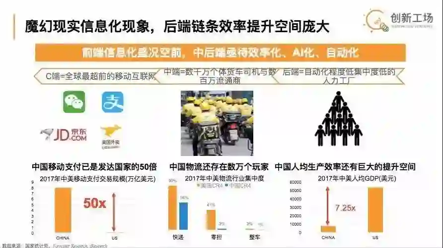 对我们来说,这样所谓的不匹配从第一个角度来讲,其实都是潜力。如果我们像欧美那样已经非常发达,那么它的改进空间就非常有限。而中国的前端已经发展很多了,终端和后端依然有大量的效率提升空间,对整个工作来说是增长潜力,对我们来说就是投入机会。