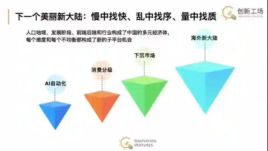 汪华指出,这也是经济进入调整期,但又有大量高速成长的公司不断涌现的矛盾根源所在。而AI自动化,消费分级、下沉市场以及海外新大陆将是新的投资增长点。