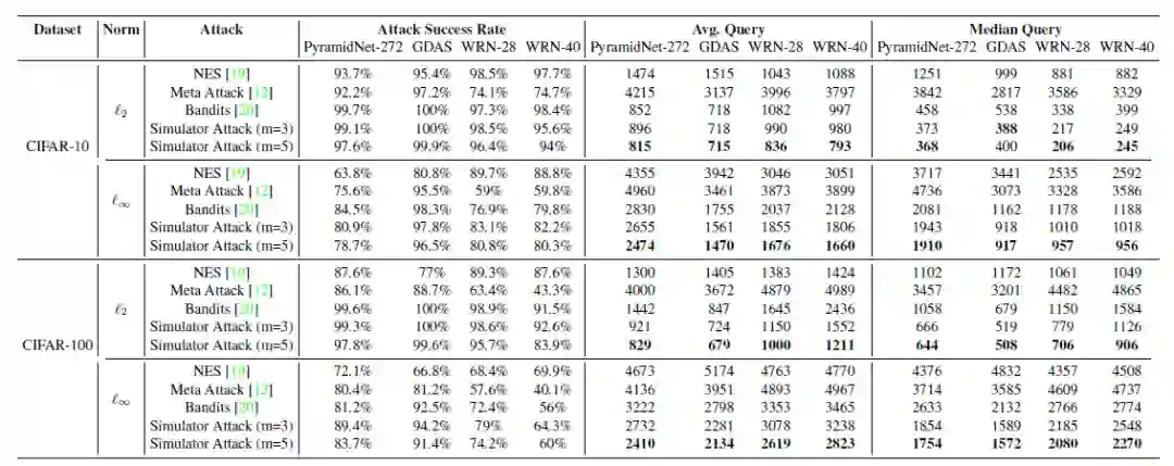 「万物皆可模拟!」运用模拟器可以模仿各种未知网络的输出,甚至是训练过程中没见过的网络,这就是模拟器攻击这篇论文所展现出的强大能力。这篇论文确定了一种新的攻击形式:攻击者可以在获知目标模型的最少量的信息的情况下成功地伪造出相似的模型,即模拟器。在攻击时,这就可以将大量的查询转移到模拟器上,从而将查询复杂度显著降低而不过多地改变成功率。