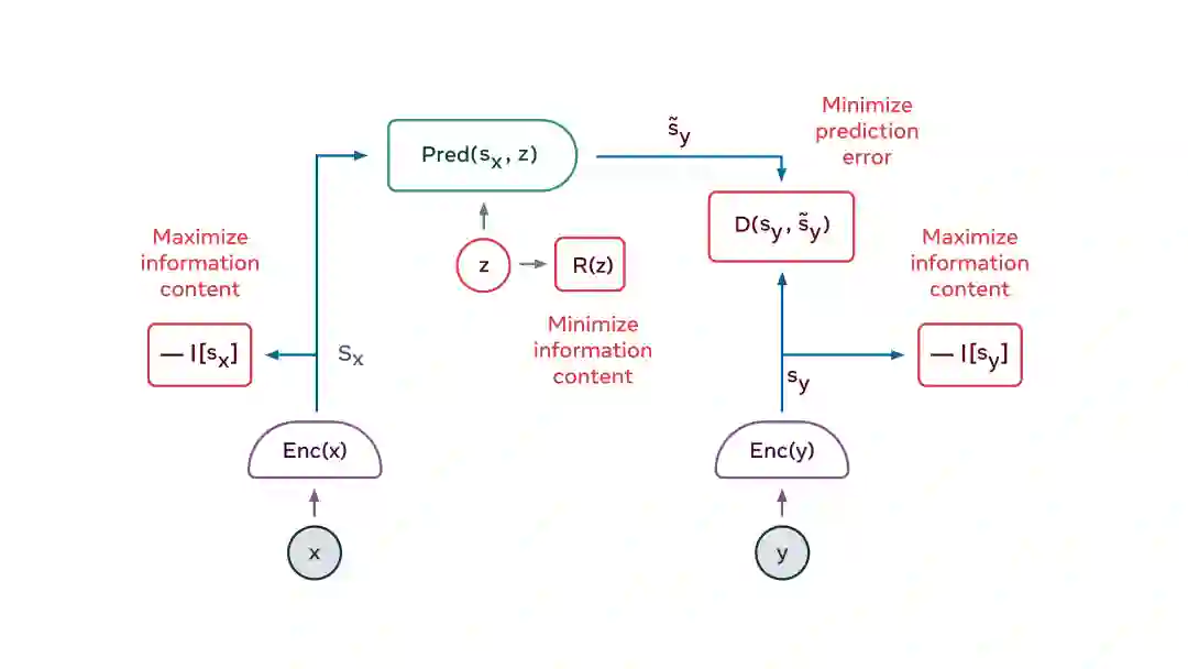 过去两年还出现了另一种训练策略:正则化方法。当应用于 JEPA 训练时,该方法使用了四个标准: