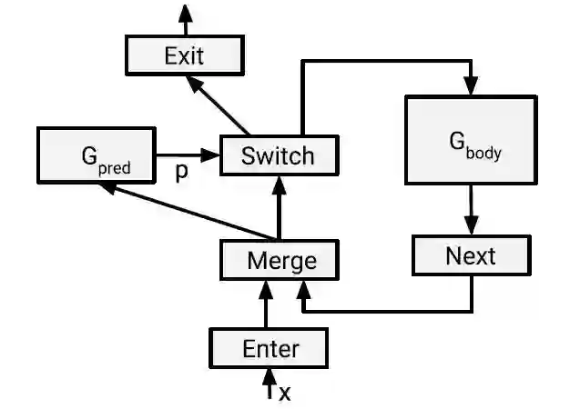 当前,机器学习的构件模块(例如,上例中的单个单元),以及使用这些模块所组成的架构,都正在快速地发展中,并且这一趋势也将继续。与将 RNN、MoE 等特性层实现为编程模型原语的方法相比,一种更好的做法是实现通用的控制流构件,例如,分支条件和循环计算。一个机器学习系统,应该提供一种通用的动态控制流机制。
