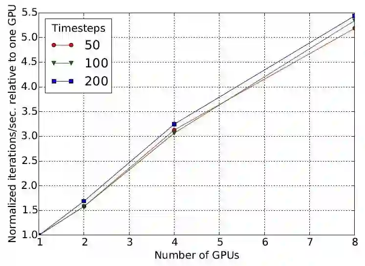 图 9:计算性能(以每秒迭代次数表示)随 GPU 数量的变化情况。