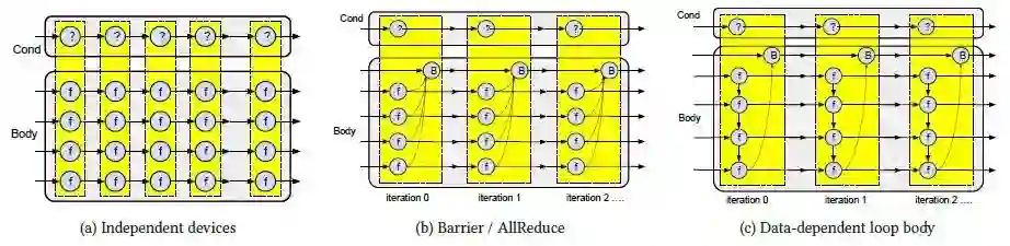 论文提出了五种简单并强大的原语,支持高层控制流构件进一步编译为新的原语,实现了更细粒度的数据流图分区,进而可通过轻量级的协调机制在一组异构设备上执行。