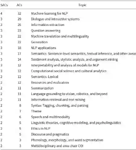成熟的研究人员,例如教科书的作者,过去常常在制定议程方面发挥更多作用。在过去,教科书和 ACL 会议之间的联系比现在更加紧密。