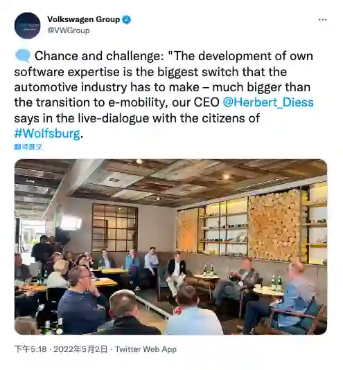 但大众并不是没有意识自己“需要一种软件文化”,今年 5 月,迪斯在 Twitter 上表示,“发展 [我们] 自己的软件技能是汽车行业必须做出的最大转变——比向电动汽车的过渡要大得多。”