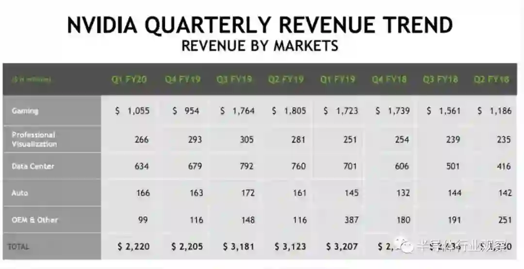 Stifel分析师凯文-卡西迪(Kevin Cassidy)周一在一份报告中写道,英伟达可能在本季度清空了游戏图形处理部门的渠道库存。卡西迪在报告中写道,“由于今年年初的挑战和竞争加剧对价格的压力”,英伟达的游戏业务收入在整个2020财年将下降14%。