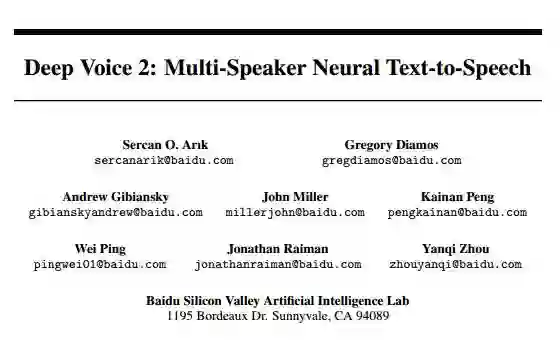 论文:Deep Voice 2:多说话人神经文本转语音(Deep Voice 2: Multi-Speaker Neural Text-to-Speech)