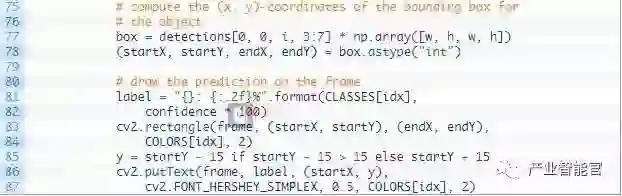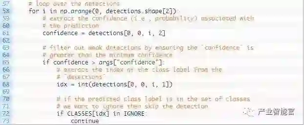 然后,回到 Ezekiel 的第一个问题,我们可以忽略 INGNORE 集合中的类别(#72—73)。如果这个类别是要被忽略的,我们只需返回到顶部的检测循环(不会显示这个类别的标签或边界框)。这符合我们的「quick hack」解决方案。