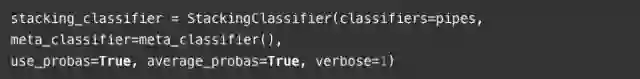 定义并配置堆叠分类器,以使用每个基本分类器提供的平均概率作为聚合函数。