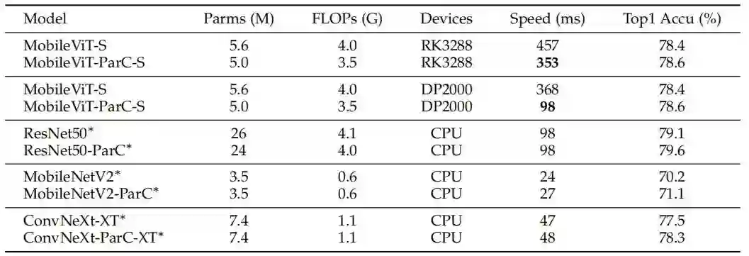 幸运的是,FastParC完全等同于ParC,并且替换不需要任何额外的转换。可以根据平台的要求选择ParC的具体实现形式。由于ParC和Fast ParC拥有最高级别的灵活性,用于训练和推理的实现也可以解耦。