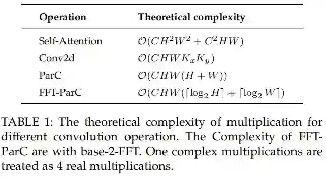公式5显示了两个严格等效的数学表达式。空间域中的ParC需要卷积式运算,而在傅里叶域中,它变成了简单的逐元素乘法。基于此提出了一种傅里叶域形式的ParC运算,称为Fast ParC。理论上可以证明,Fast ParC在空间域上严格等价于ParC。这两种实现之间的误差可以忽略不计。可以根据实际使用的平台,分别选择适当的ParC实现进行训练和推理。这为ParC提供了强大的灵活性。Fast ParC的优势显而易见: