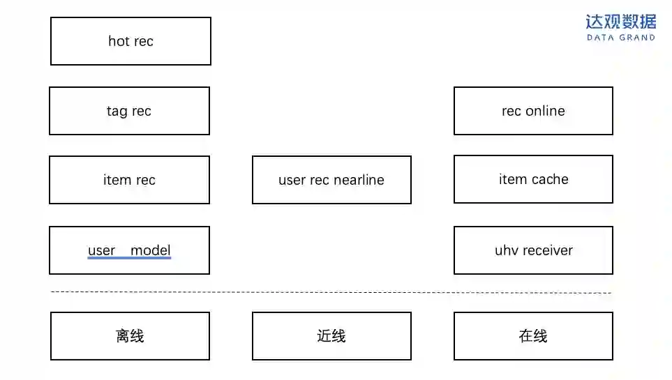 达观推荐引擎采用在线-近线-离线三层系统架构,可以从性能和算法复杂度两个维度来进行区分。