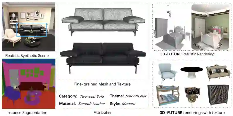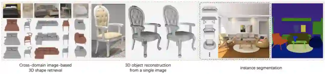 同时,在相关团队的技术研发过程中发现,海量的高质量 3D 模型与纹理,以及专业的房屋设计布局是推动未来数字化家居建设的基础。为了启发高质量 3D 模型理解与重建,并且建立学术研究与工业应用的桥梁。阿里巴巴针对家居场景开源大型3D数据集3D-FUTURE(3D Furniture shape with TextURE)。