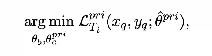 在查询集上,我们只需使用共享的 BERT 参数和分类头的参数进行推理即可,其优化的目标为: