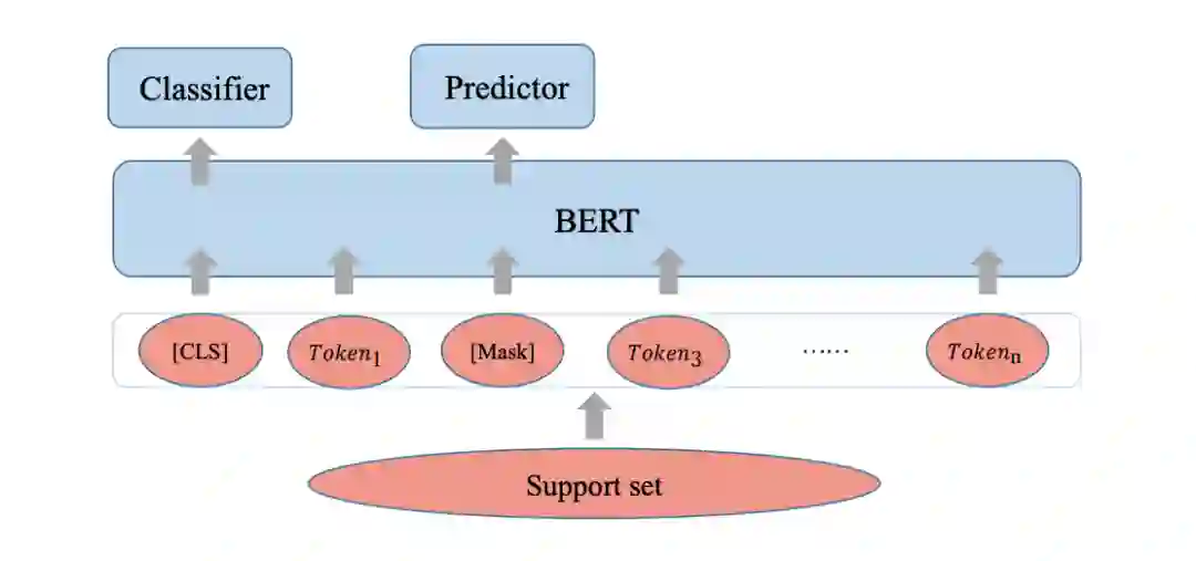 实际上就是 BERT 的 MLM 任务,作者在 mask 比例的选择上有所调整。作者认为 BERT 采用的 mask 比例,如果支持集中有较短的文本,很可能导致此文本中没有被 mask 掉的 token,这会使 MTP 失效。