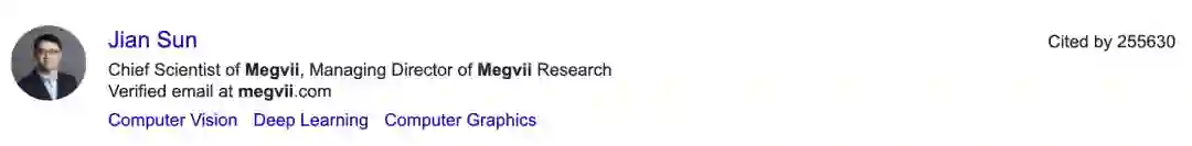 旷视首席科学家及旷视研究院院长孙剑被引数为255630。