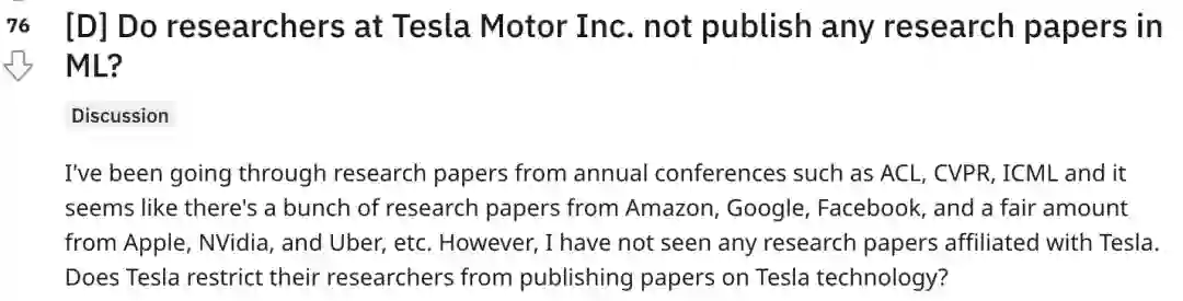 甚至还有人曾发问特斯拉研究人员都不发论文吗?