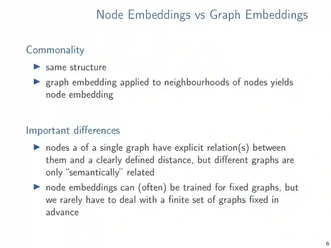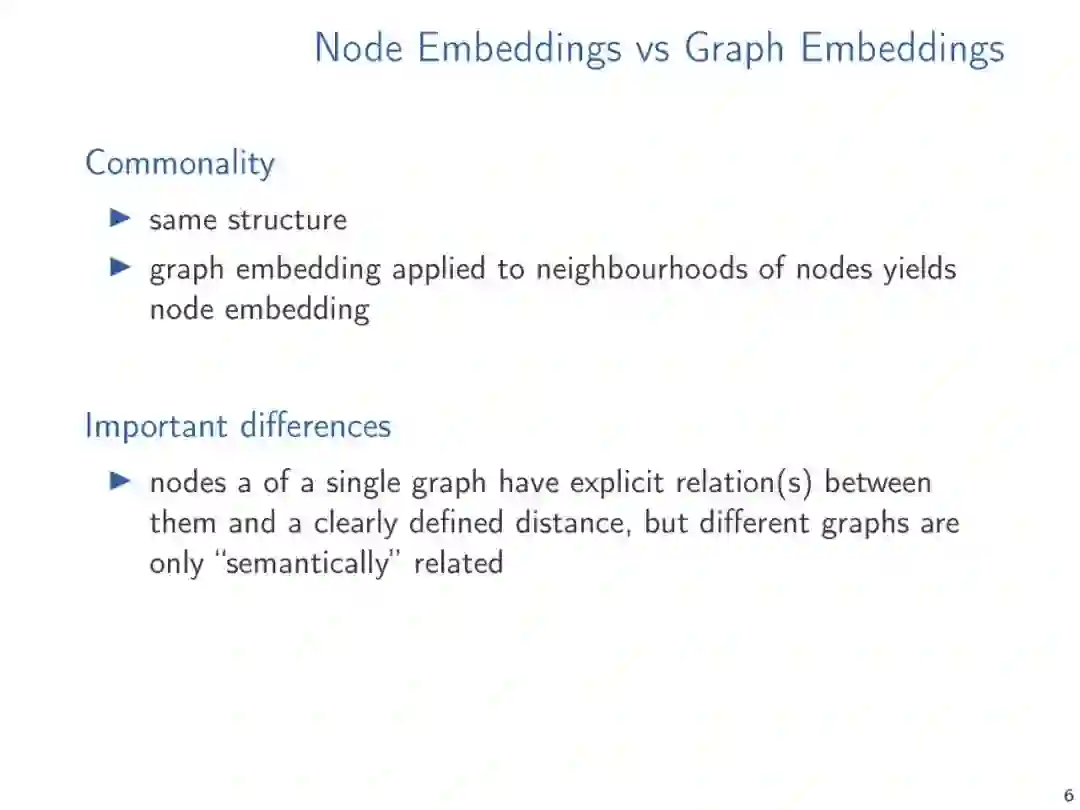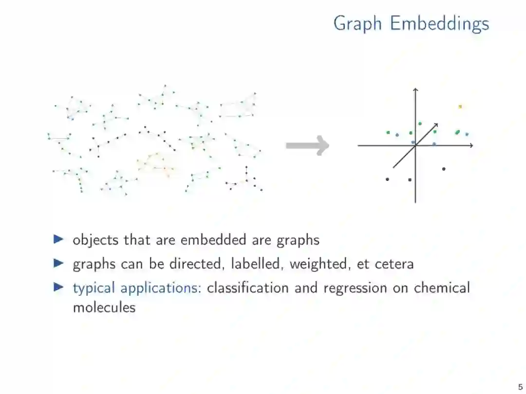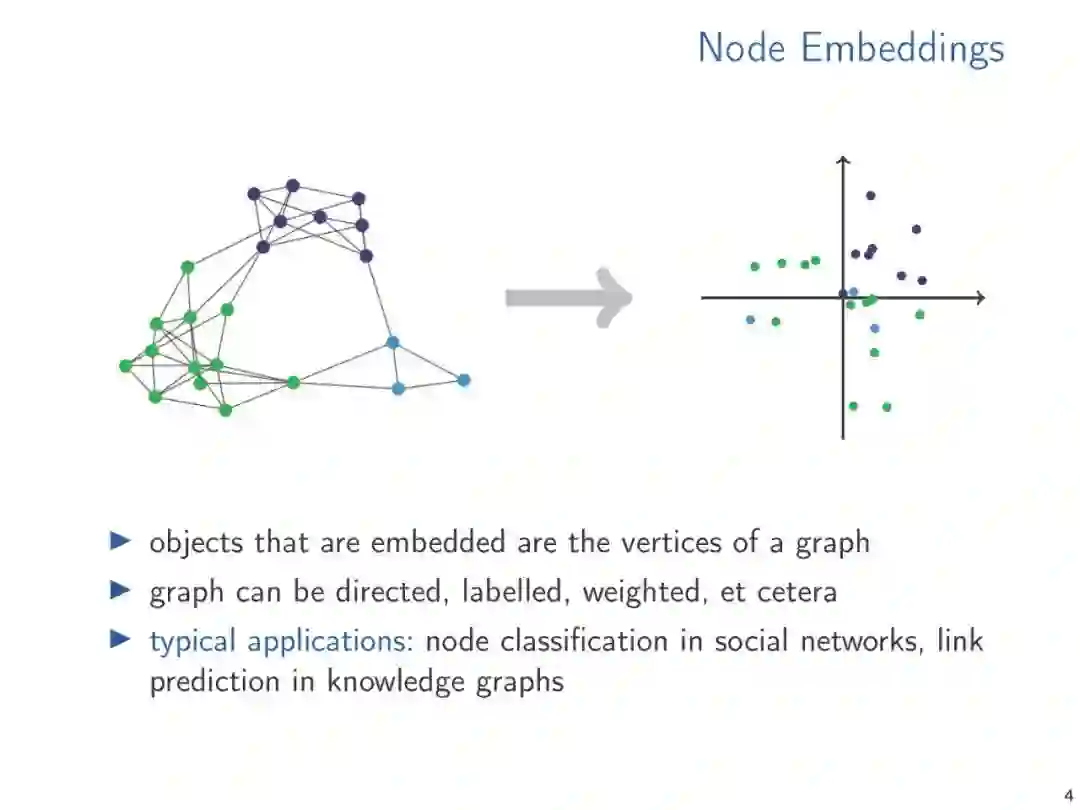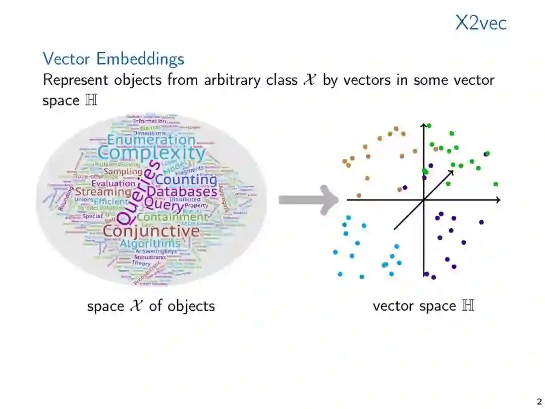 典型机器学习算法需要将通常是符号数据表示为数字向量才能在结构化数据上计算。数据的向量表示从手工设计特征到学习表示,或者通过专用的嵌入算法计算,或者通过像图神经网络这样的学习架构隐式计算。机器学习方法的性能关键取决于向量表示的质量。因此,有大量的研究提出了广泛的矢量嵌入方法用于各种应用。这些研究大多是经验性的,通常针对特定的应用领域。考虑到主题的重要性,关于向量嵌入的理论工作少得令人惊讶,特别是当它表示超越度量信息(即图中的距离)的结构信息时。
