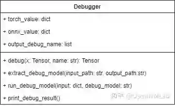 接着,我们来实现精度对齐工具的核心——Debugger 类。这个类包含了实现精度对齐所需的所有操作。其定义如下: