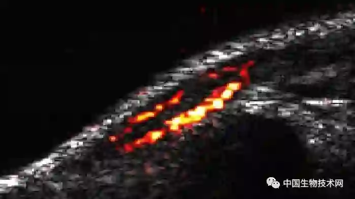 超声图像显示基因在小鼠肿瘤边缘是活跃的。图片来源:Science