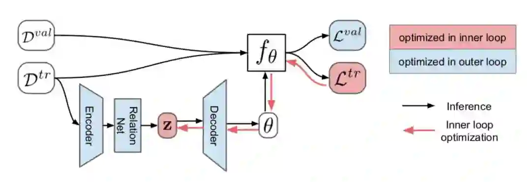 图7中简洁地展示了四种小样本学习领域中最为经典的方法,现在绝大多数state-of-the-art的方法都是基于这四个方法的改进的。目前效果最好的方法是ICLR2019收录的LEO方法,它集合了RelationNet和MAML两种方法,利用编解码器帮助MAML大幅缩小了参数搜索空间,又使用RelationNet加强了编解码过程中利用样本和标签映射的精度。