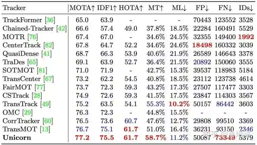 在MOT17数据集上,Unicorn在MOTA,IDF1,HOTA三项重要跟踪指标上均做到了state-of-the-art。