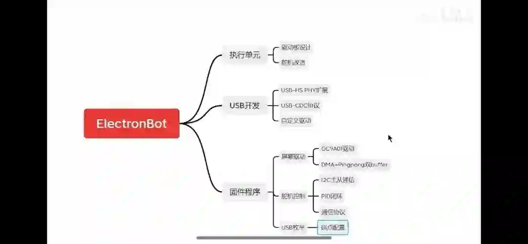 稚晖君使用了Cortex-M4内核MCU STM32F4,用于驱动屏幕、控制舵机以及进行USB通信,由于芯片本身的USB功能只支持低速或者全速的USB。因此为了提高通信速率,稚晖君在电路上添加了高速的USB-PHY芯片,将理论通信速率提高到400Mbps。