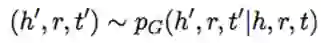 概率分布的计算使用以下公式,f_G(h, r, t)为生成器的scorefunction: