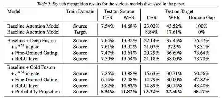 在该研究中,我们展示了一种新型 Seq2Seq 通用模型架构,其解码器和预训练的语言模型一起训练。我们研究并确认,架构变化对该模型充分利用语言模型中的信息至关重要,这也帮助模型实现更好地泛化;通过利用 RNN 语言模型,冷聚变模型产生的词错率比深度聚变模型低 18%。此外,我们证明冷聚变模型能够更轻松地迁移至新的域,仅需要 10% 的标注数据,即几乎可完全迁移至新的域。