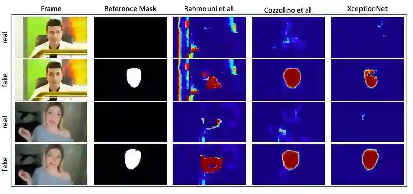 可以发现,在无压缩情况下,所有模型都表现良好,而随着视频清晰度的下降,它们的准确率也都出现了不同程度的下降,其中较浅的CNN表现尤为明显,而XceptionNet CNN总体表现优秀。事实上,这种下降是可以接受的,因为一旦视频变得很模糊,人眼也无法作出准确的区分。