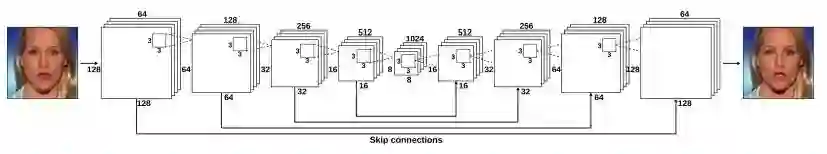 之后,我们又对FaceForensics中的368,135个训练图像进行微调,并把经过预训练的自动编码器网络放在上面训练。我们输入一张假脸,把监督学习的loss设置成1,启用skip connection,以便网络能输出更清晰的结果。