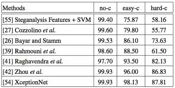 处理图像的像素级分割是一项非常具有挑战性的任务,而对于图像取证,最有效的一种方法是根据基于相机的伪像(如传感器噪声,去马赛克)。但这种方法在我们的数据集上并没有很好的表现,即便是未压缩的视频,它的表现也很一般。所以我们还是得用深度学习方法,用数据集进行充分训练。