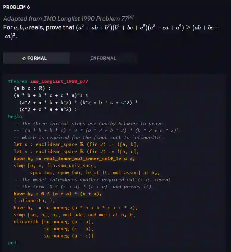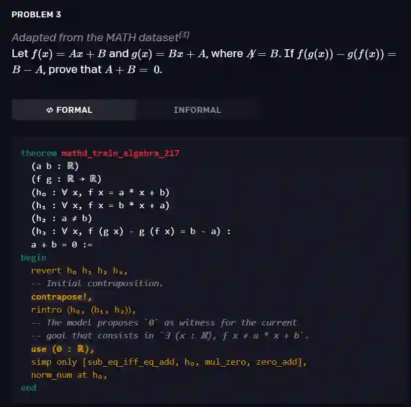 该证明器在 miniF2F 基准测试中实现了 SOTA(41.2% vs 29.3%)水平,miniF2F 包含一组具有挑战性的高中奥林匹克问题。